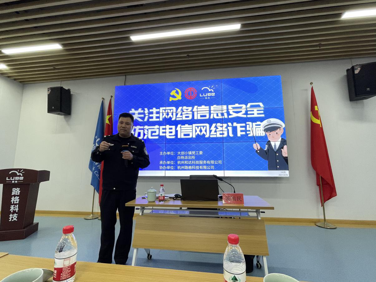 為深入貫徹落實習近平總書記對打擊治理電信網絡詐騙犯罪工作作出的重要指示精神,進一步加大公司反詐宣傳力度,普及反詐知識,增強防范意識,有效遏制電信詐騙高發勢頭,營造良好的工作、生活治安環境。4月26日下午,由杭州市錢塘區大創小鎮黨工委、白楊派出所聯合杭州和達科技服務有限公司、杭州路格科技有限公司舉辦了一場“防范電信(網絡)詐騙培訓”專題講座,邀請大創小鎮內的一些企業前來參加。