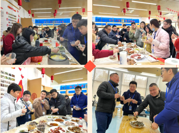 上午10點,各部門的美食能手們已經帶著來自五湖四海的特色食材在公司一樓展廳準備完畢,煎炒烹炸、蒸鹵煮燉,紛紛拿出看家本領。梅干菜扣肉、醉蟹、醬牛肉、清蒸農家肉腸、酒糟魚......一份份精品菜肴呈現在餐桌上。美食美味之后當然少不了甜點水果。車厘子、藍莓、哈密瓜、蜜橘.......還有點心、堅果、飲料......多樣飯后甜點輪番上場。路格家人們在一起品美食、話家常,歡聲笑語,氛圍祥和。