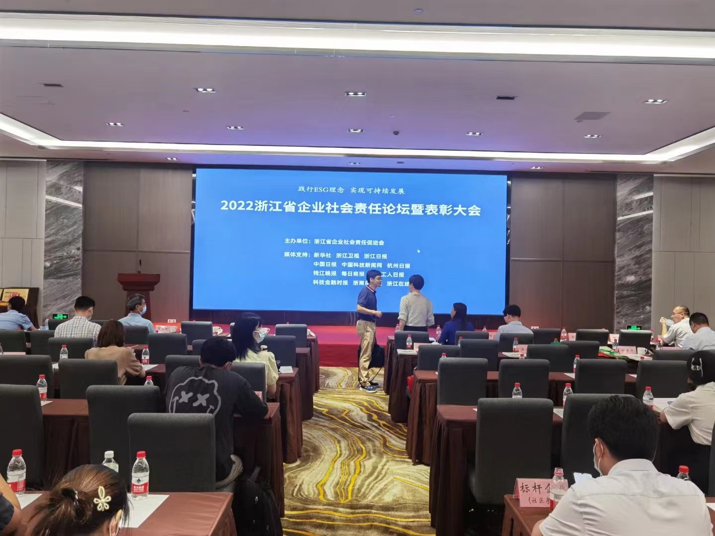 6月27日,由浙江省企業社會責任促進會主辦的“2022浙江省企業社會責任論壇暨表彰大會”在杭州舉行,我司獲評2021浙江省企業社會責任標桿企業(勞工實踐),我司執行董事何望君參加大會并上臺領獎。