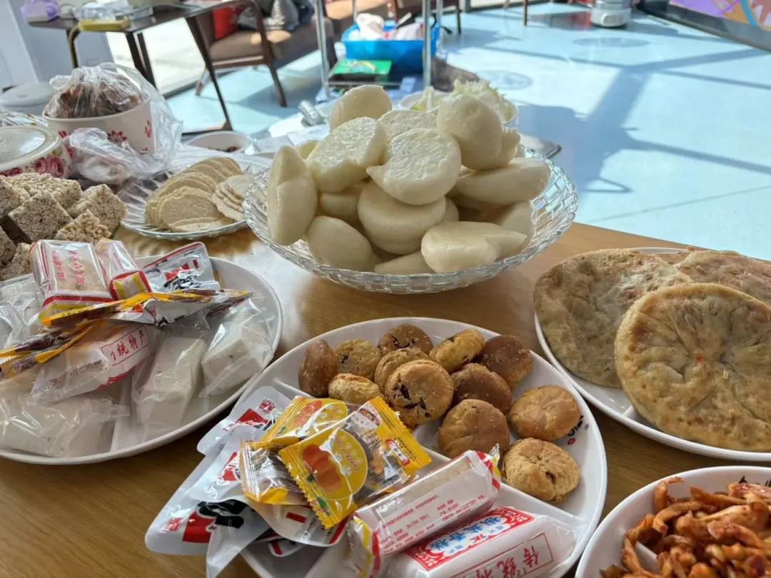 香味四溢的美食吸引全體同事駐足品嘗,大家圍著桌子不停自轉,這個好吃,那個美味,這是啥,那個是啥?一邊品嘗、一邊點評、嘻嘻哈哈、好不熱鬧。