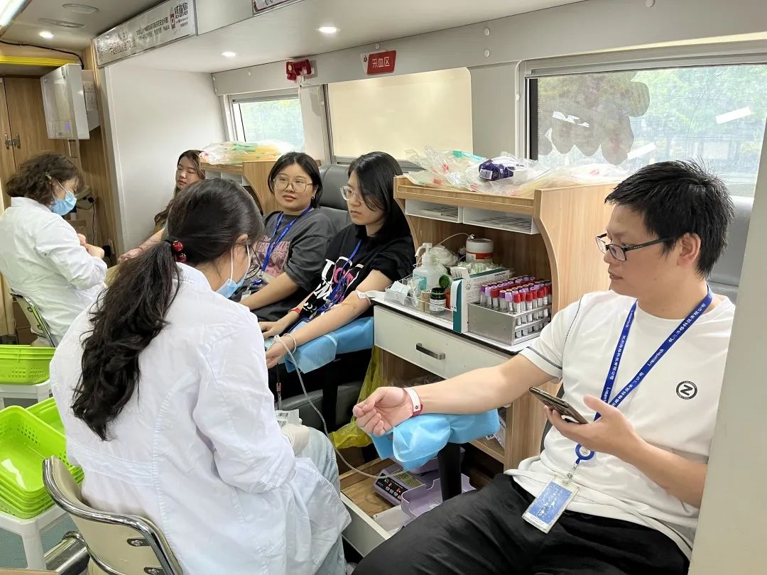 活動啟動后,在現場醫護人員和工作人員的引導下,參加獻血的同志有序填寫無償獻血登記表、查詢獻血既往史,完成血壓測量、血液化驗等常規檢查,待各項指標符合要求后,依次前往獻血車排隊完成采血。他們勇敢地挽起衣袖,伸出手臂,用實際行動獻出自己的一份愛心,當日共有56人參加初檢,其中24人成功獻血,獻血總量達6400毫升。