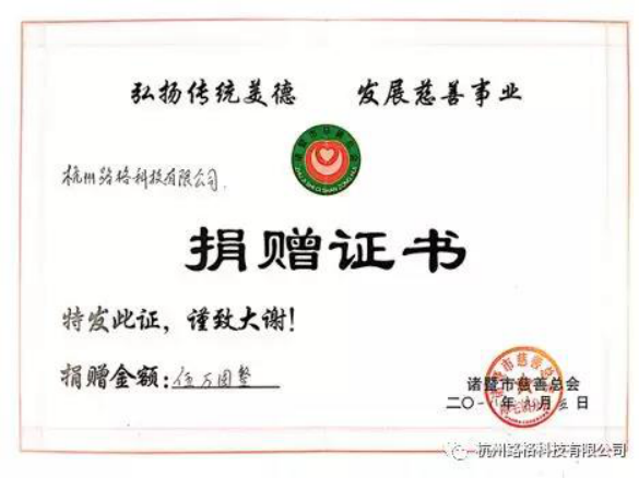 諸暨市陳宅鎮是公司總經理何望君的家鄉,陳宅鎮中心學校是他的母校。路格科技創建十年來,時時刻刻用愛心從事著公益、慈善。 2018年“路格教育獎助學金”設立,一方面是為獎勵勇于進取、勤奮學習的優秀學子,鼓勵努力工作、創優創新的教師;另一方面,也是為了回報家鄉的養育之恩,貢獻綿薄的力量。