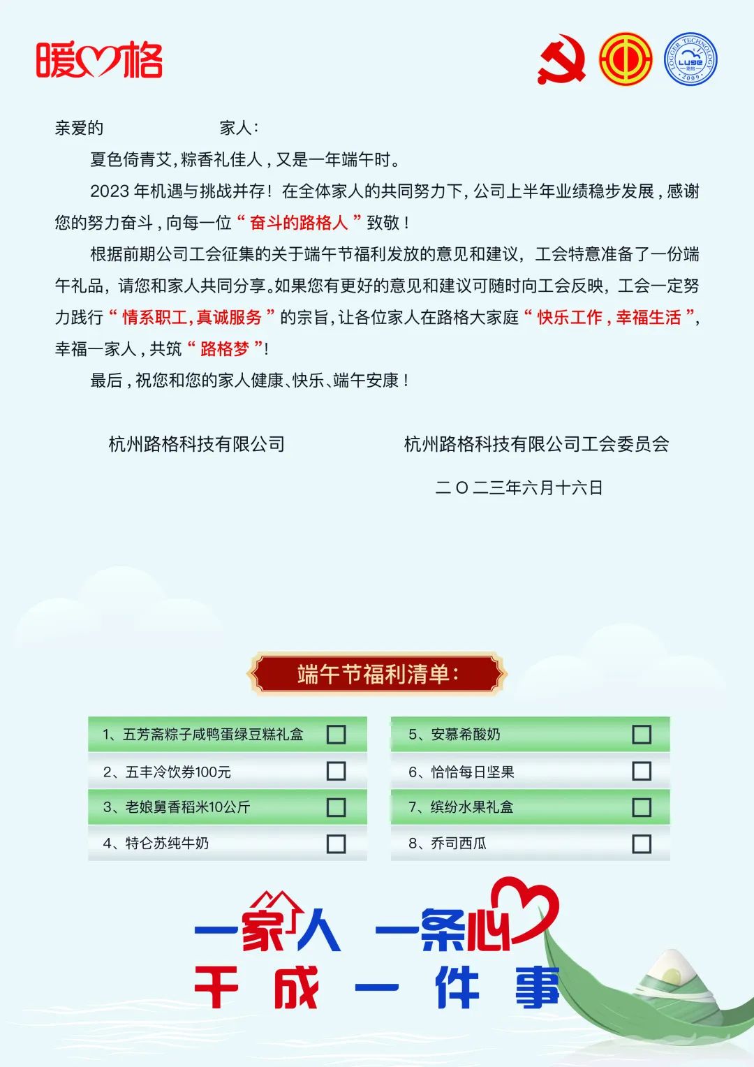 每年端午節(jié)的福利發(fā)放,不僅讓員工提前感受到了節(jié)日的氣氛,也將公司濃濃的關(guān)懷融入到了縷縷粽香之中,讓每位路格家人能夠快樂(lè)工作,幸福生活!