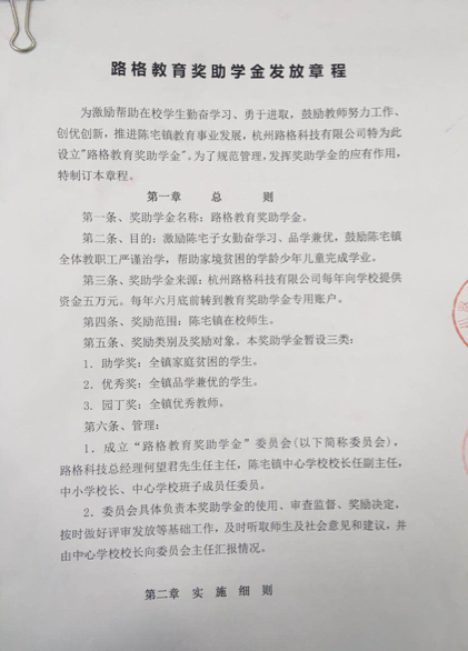 “少年強(qiáng)則中國強(qiáng)”,秉承著這一信念,2018年1月5日,路格科技在諸暨市陳宅鎮(zhèn)設(shè)立了每年5萬元的“路格教育獎(jiǎng)助學(xué)金”,旨在為我們莘莘學(xué)子減少一些學(xué)習(xí)上物質(zhì)的困難,激勵(lì)在校學(xué)生勤奮學(xué)習(xí),勇于進(jìn)取;同時(shí)也不忘我們辛苦育人的教師,設(shè)立相應(yīng)獎(jiǎng)鼓勵(lì)教師努力工作、創(chuàng)優(yōu)創(chuàng)新。