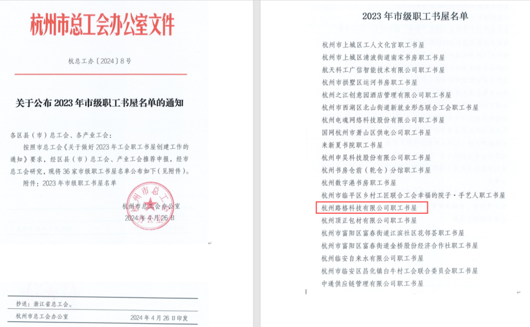 4月26日,根據(jù)杭州市總工會辦公室《關(guān)于公布2023年市級職工書屋名單的通知》,我司紅色書屋被評為2023年市級職工書屋。