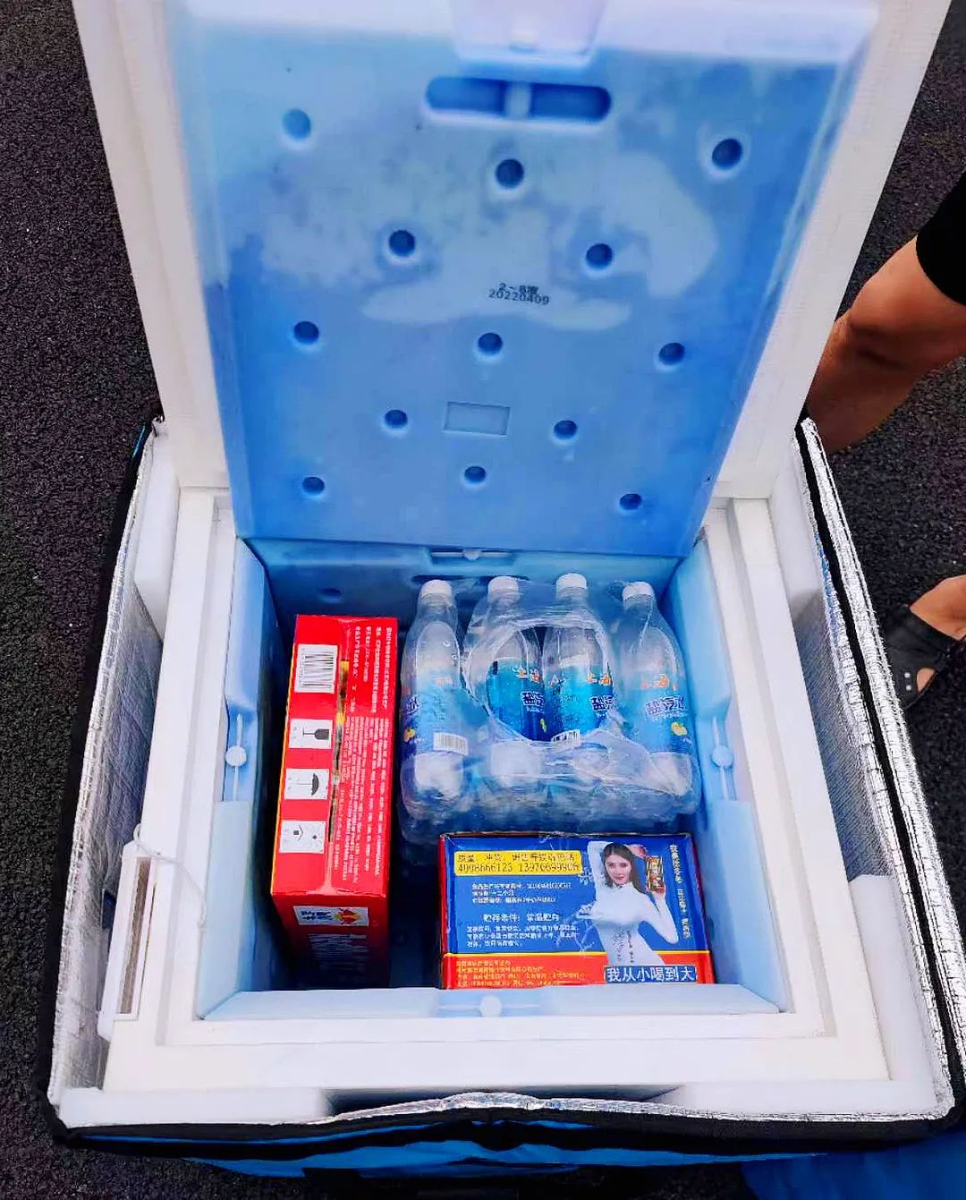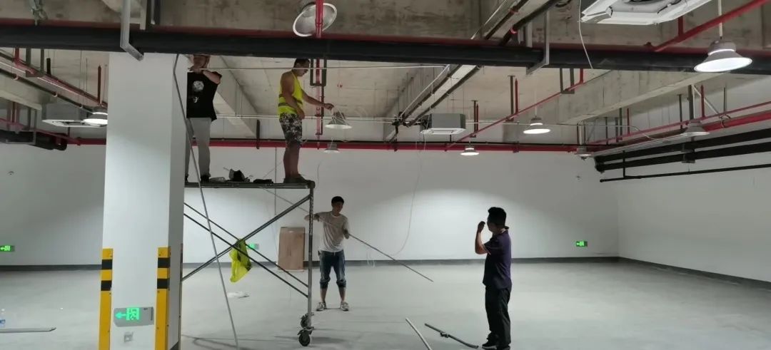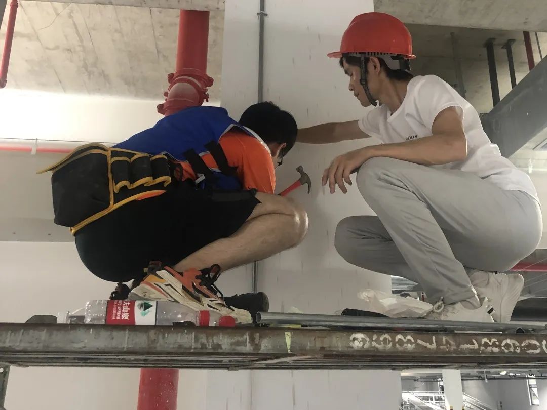 我司執行董事何望君及總經理陳樹浩親自裝車帶隊將一箱箱解暑降溫的冰鎮飲料、路格清涼裝備-掛脖電風扇、降溫冰衣、消暑藥品等降溫品送到員工們手中,其他各部門同事周末也一起走進國藥施工現場,配合安裝部門工作。