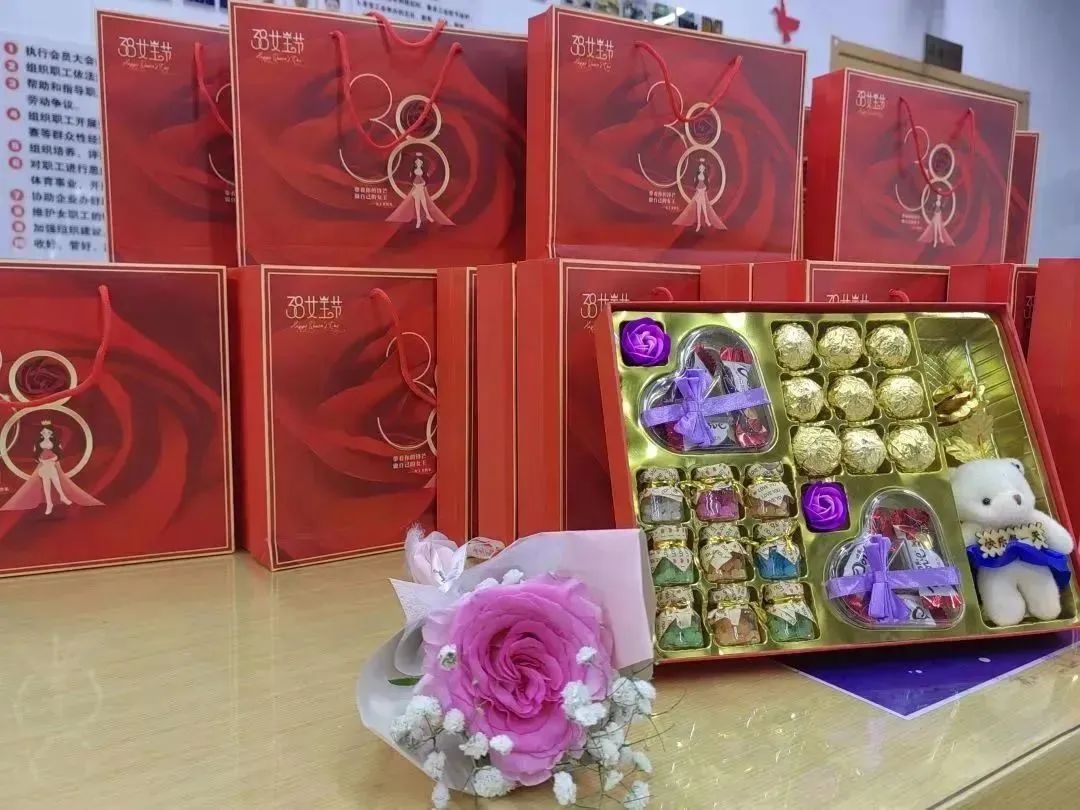 春風輕飛柳,弄花香滿衣。本次“三八”婦女節,公司還為全體女職工準備了“38女王節”德芙巧克力禮盒和美麗的鮮花。