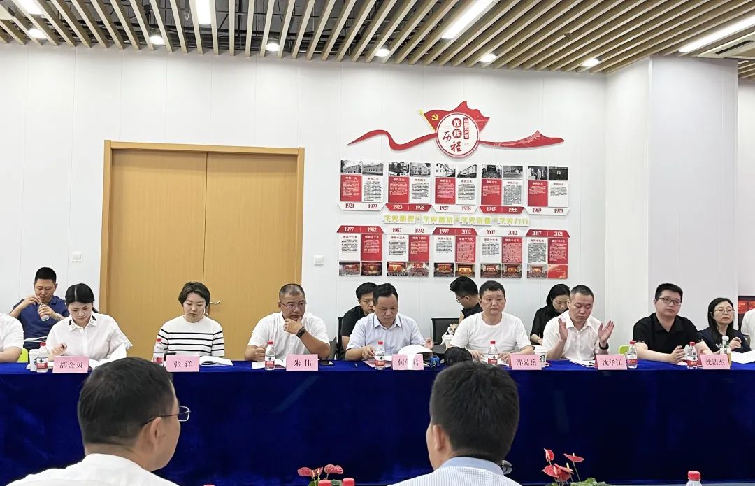 7月15日上午,錢塘區新生代企業家學習貫徹省第十五次黨代會精神專題研討活動在我司一樓黨群服務中心召開。錢塘區區委常委、統戰部部長周偉東、錢塘區統戰部副部長、區工商聯黨組書記鄧海鷹、區直機關工委專職副書記鄭新民、區工商聯秘書長封金東、區新生代企業家聯誼會會長沈浩昱以及區僑聯、區歐美同學會、區知聯會、區網聯會等統戰團體代表參加了此次會議。