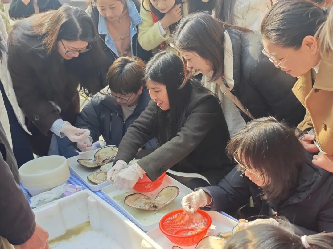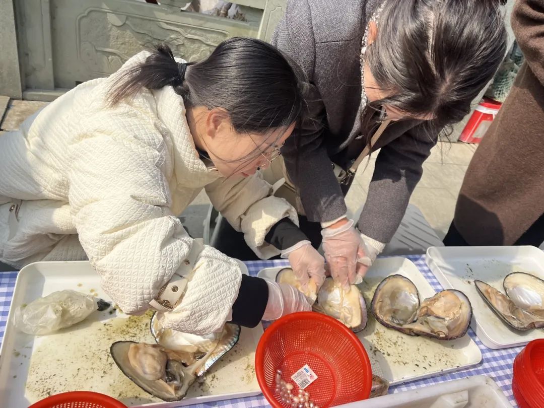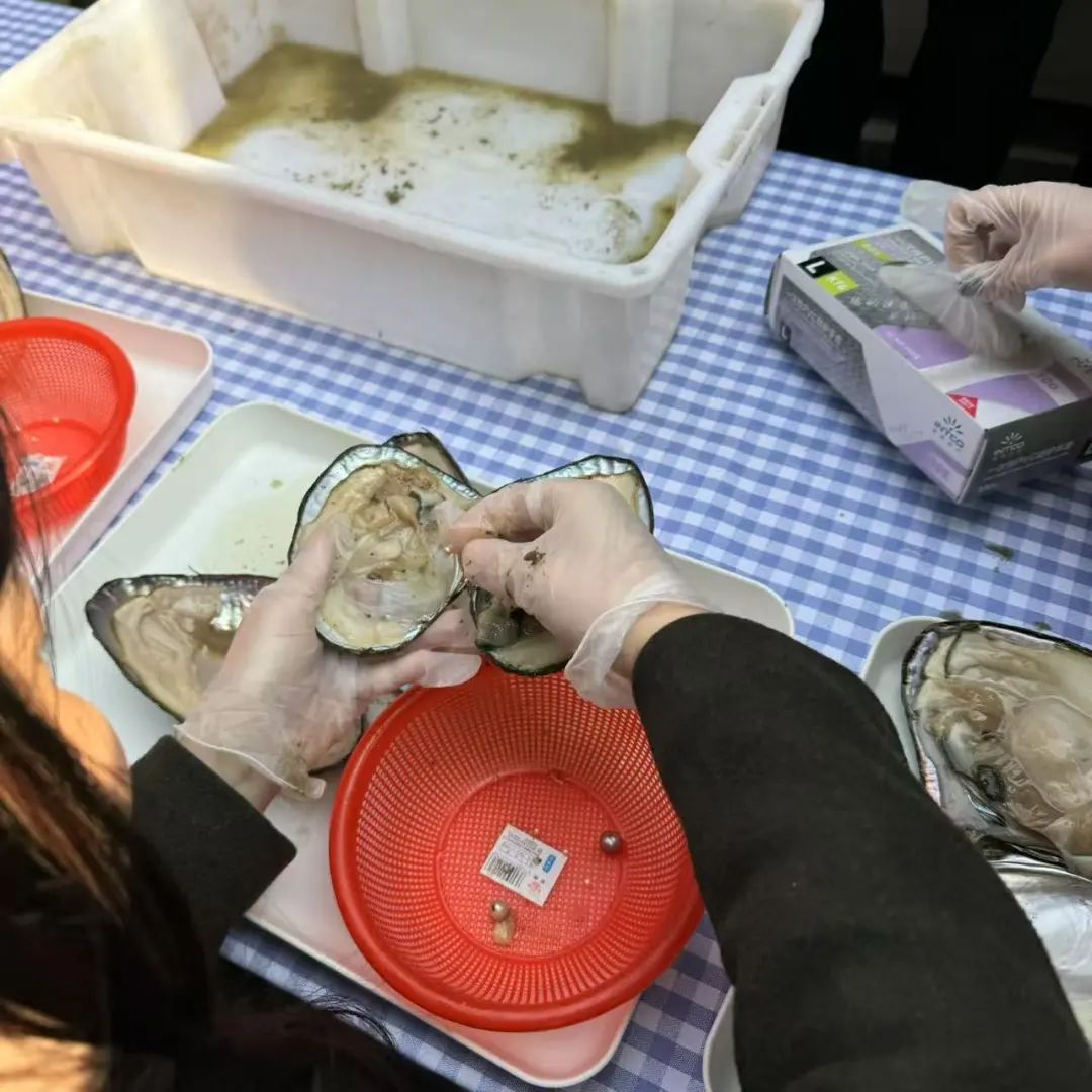 在專業人員的指導下,大家開始動手嘗試開蚌取珠啦!女職工們滿懷著期待打開了自己的珠蚌“盲盒”,大家興奮地尋找正在“捉迷藏”的珍珠,大大小小的珍珠,讓大家欣喜連連,歡呼聲一片。