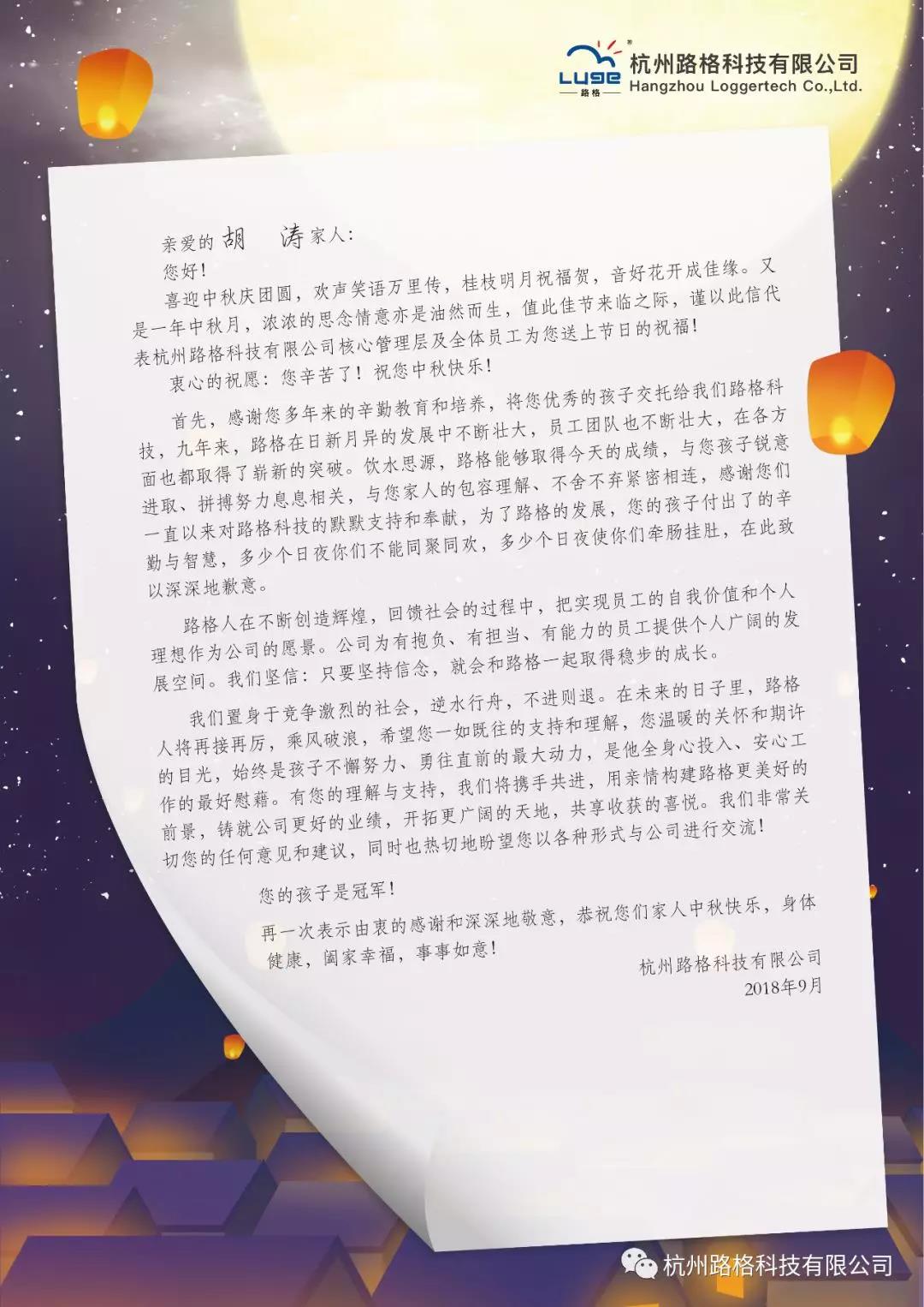 為各位員工家屬寄去的月餅禮盒代表公司的心意。郵寄的月餅中附帶著家書,為各位員工家屬送去了中秋祝福,感謝各位家屬對大家工作給予的支持,以及再次向各位同事家屬對公司的信任致以真誠的感謝和敬意。