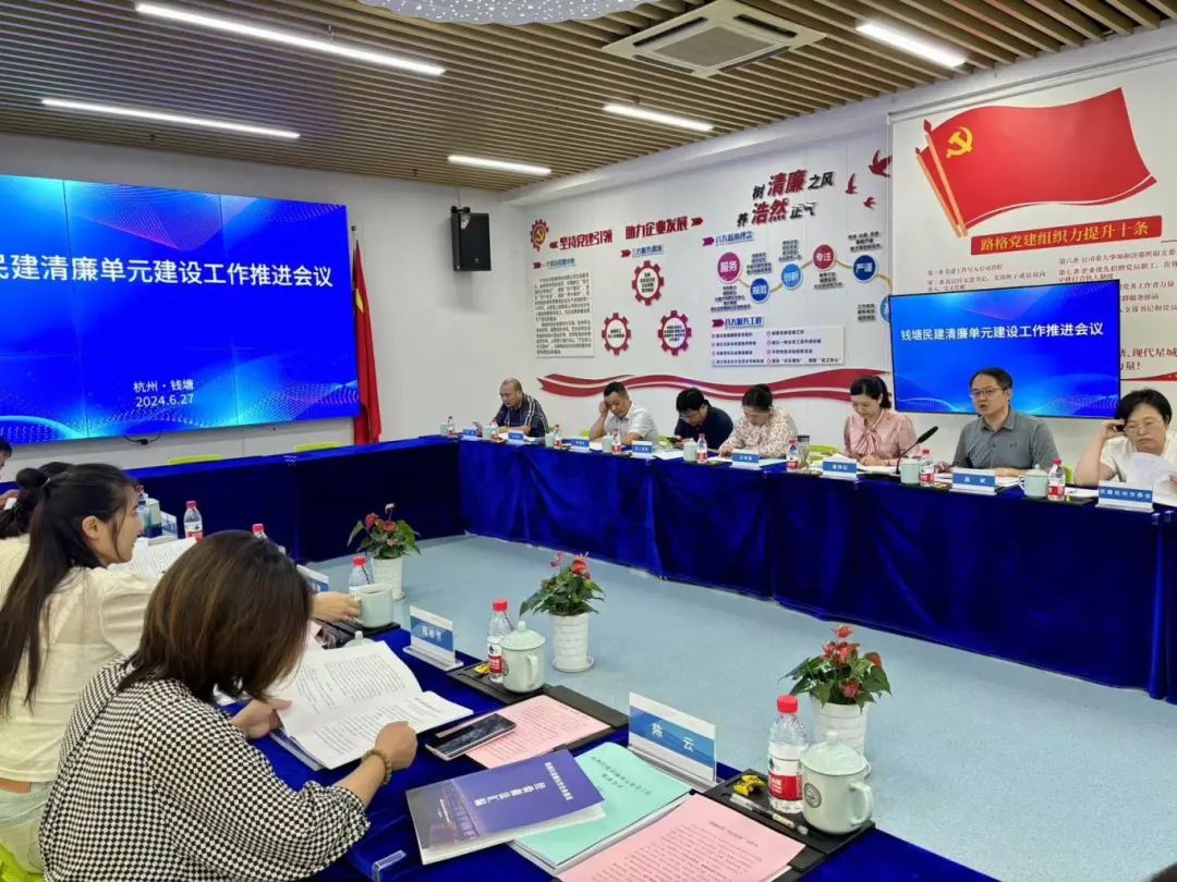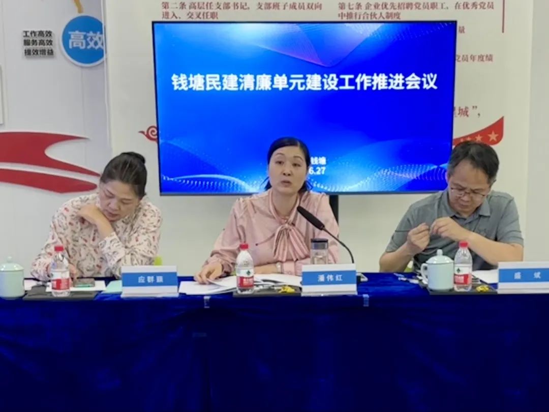 為深入學(xué)習(xí)貫徹習(xí)近平總書記考察浙江重要講話精神和省、市、區(qū)關(guān)于加強新時代民營經(jīng)濟(jì)工作,全面落實民建杭州市委會清廉單元建設(shè)工作部署要求,進(jìn)一步推進(jìn)“深入實施同心同廉工程,做好廉政建設(shè)全域示范點”工作,6月27日下午,錢塘民建清廉單元建設(shè)工作推進(jìn)會議在我司一樓會議室順利召開。會前,全體與會人員在錢塘清廉家風(fēng)館開展警示教育學(xué)習(xí)。