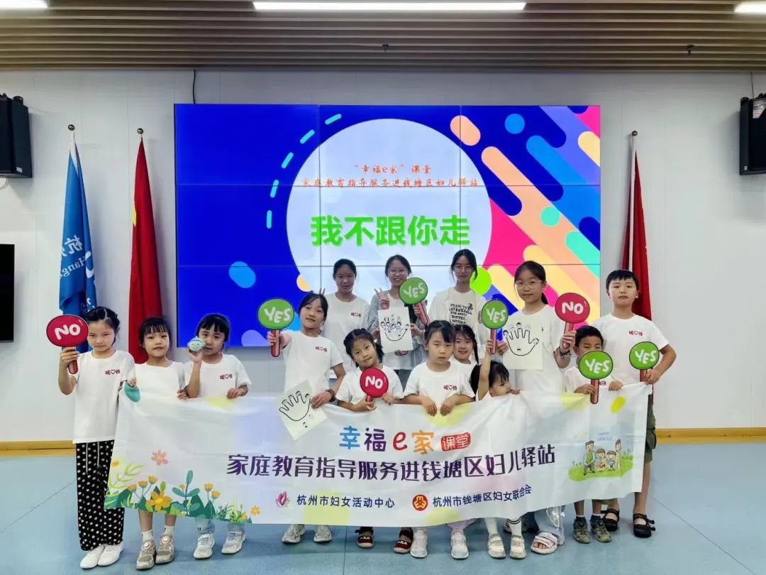 杭州市婦女活動中心、杭州市錢塘區婦女聯合會推出“幸福e家”課堂——家庭教育指導服務進錢塘區婦兒驛站項目。這次為小朋友們帶來繪本課堂《我不跟你走》,老師用生活中的情景故事,讓孩子們在學習中增強自我保護意識。