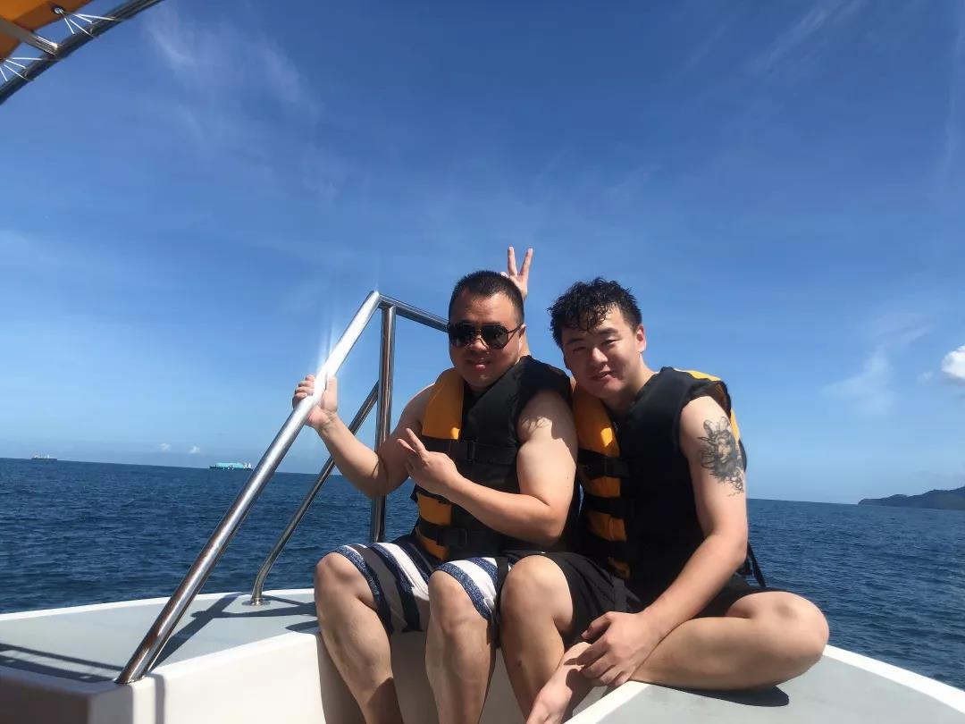 早晨吃過(guò)早飯后,大家在碼頭集合后搭乘快艇前往彩虹島。