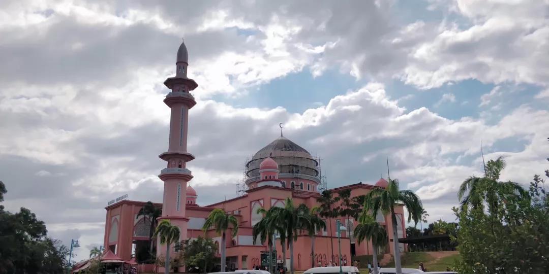 快艇返回大陸后,我們便來(lái)到了享譽(yù)東南亞的沙巴大學(xué),參觀這里的粉紅清真寺,合影留念。