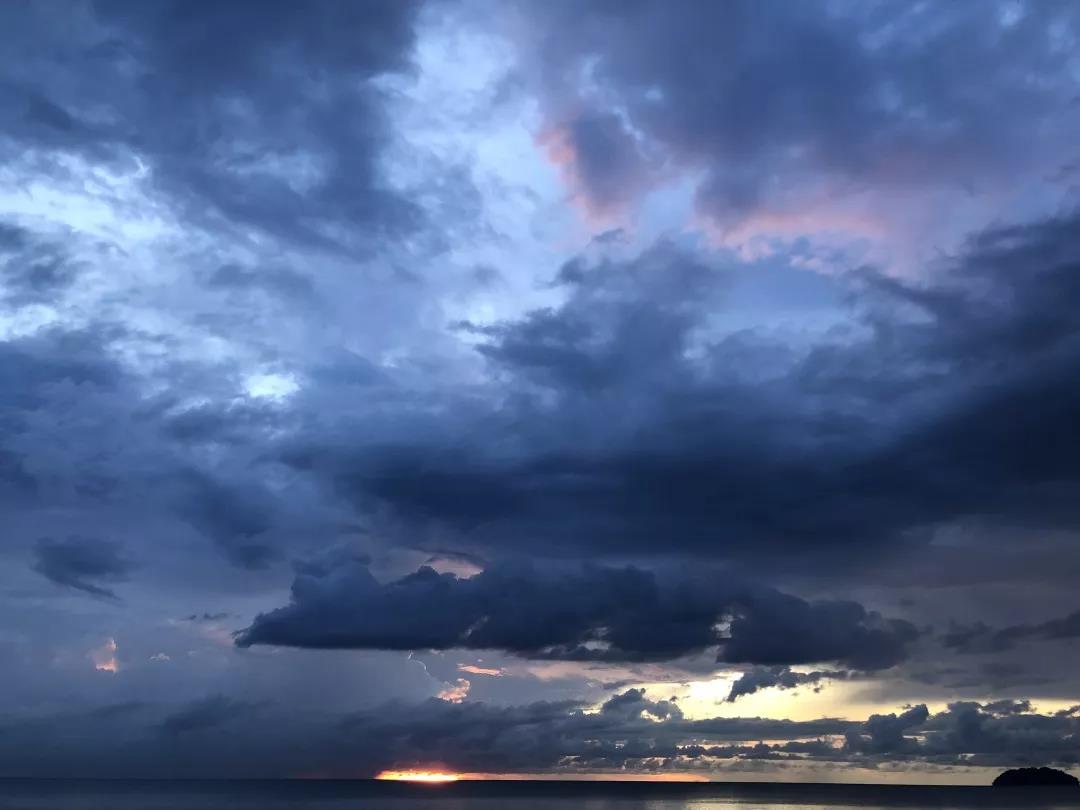 來(lái)沙灘的路上下過(guò)大雨,天上云彩很厚,一開(kāi)始并不見(jiàn)太陽(yáng),隨著時(shí)間的推移,太陽(yáng)開(kāi)始慢慢下墜,海水逐漸被一片金色渲染,直至海天一色、散發(fā)出金藍(lán)色的光芒,如同夢(mèng)境一般令人沉醉!