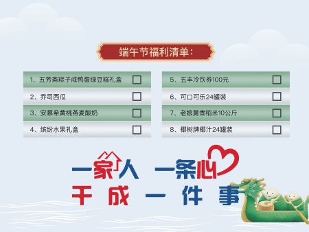 一年一端午,一歲一安康,端午未到,福利先行!公司有溫暖,員工有力量,在端午佳節到來之際,公司工會給全體員工送上了端午節的誠摯祝福和貼心福利。