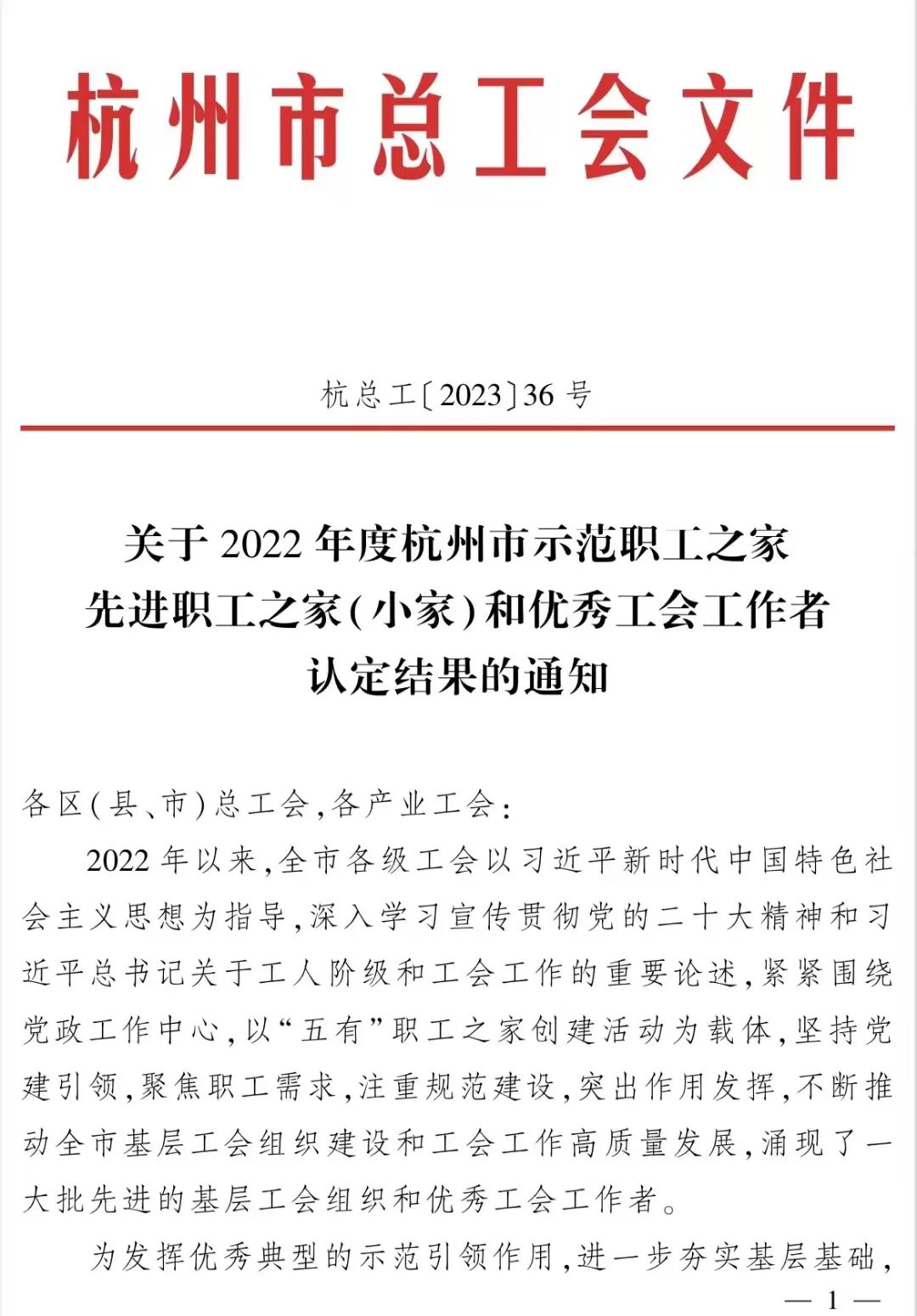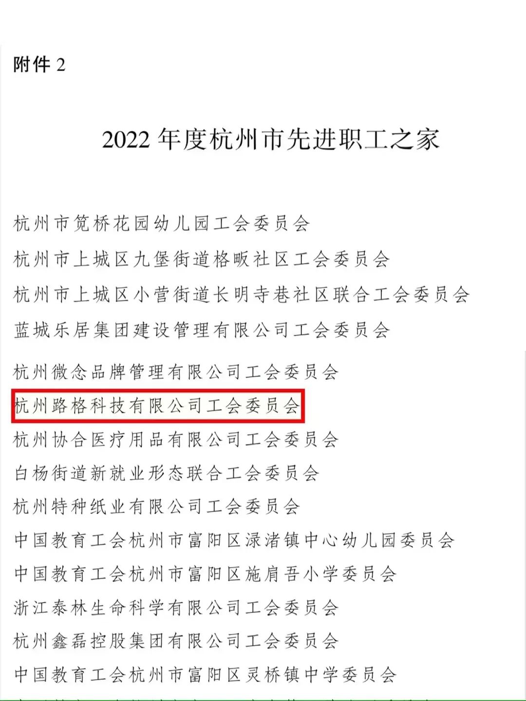 近日,杭州市總工會發(fā)布《關(guān)于2022年度杭州市示范職工之家先進職工之家(小家)和優(yōu)秀工會工作者認定結(jié)果的通知》,杭州路格科技有限公司工會委員會被評為“2022年度杭州市先進職工之家”。