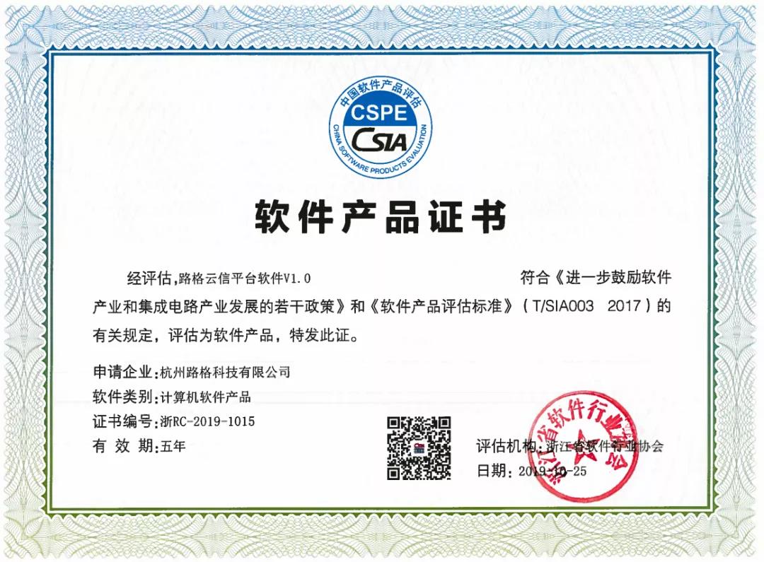為了積極開拓軟件市場,加強公司知識產權保護。經浙江省軟件行業協會審核,我公司自主研發的 《路格云驗證報告在線分析平臺軟件V1.0》和《路格云信平臺軟件V1.0》的軟件產品,符合《進一步鼓勵軟件產業和集成電路產業發展的若干政策》和《軟件產品評估標準》的相關要求,特頒發《軟件產品登記證書》。