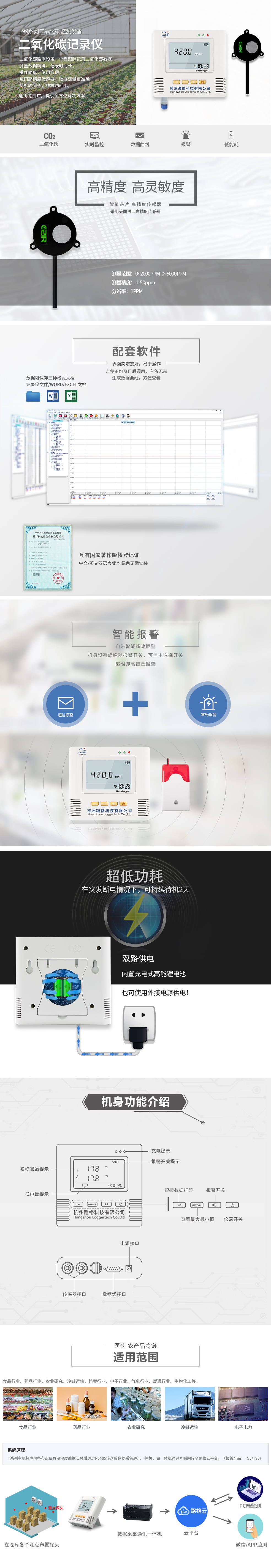 1、全程跟蹤記錄二氧化碳數據,記錄時間長(15分鐘記錄一次數據,可記錄長達10個月甚至更長的時間)。