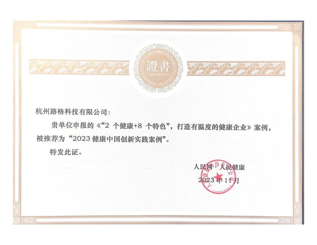 此次案例征集展示活動重點圍繞健康中國專項行動,面向全國各級企事業單位,在推進健康中國行動,助力健康中國建設中涌現出的創新做法和先進經驗。最終共有120家單位獲獎,我司申報的《“2個健康+8個特色”,打造有溫度的健康企業》案例被推薦為“2023健康中國創新實踐案例”。