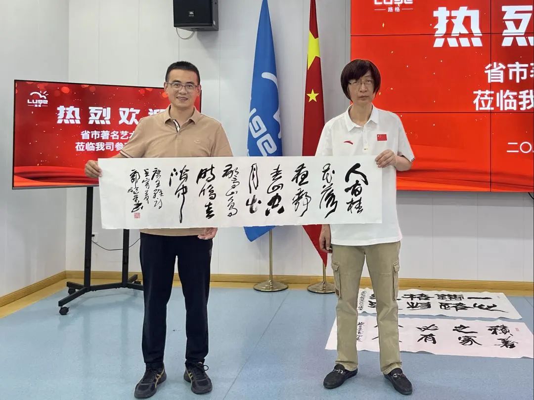 此次,各位藝術家一行在參觀我司時不僅給予了高度評價,并在現場飽蘸濃墨,欣然揮毫,令現場觀摩的員工們由衷贊嘆大師們的非凡功力和中華書法的博大精深。不僅如此,大師們還饋贈了一幅又一幅的珍貴墨寶,寄情抒懷,期望路格在今后的發展中能取得更大的成功。同時也贈予我司熱愛書畫的基層員工們牡丹字畫團扇,期望他們在今后的工作中繼續奮進。