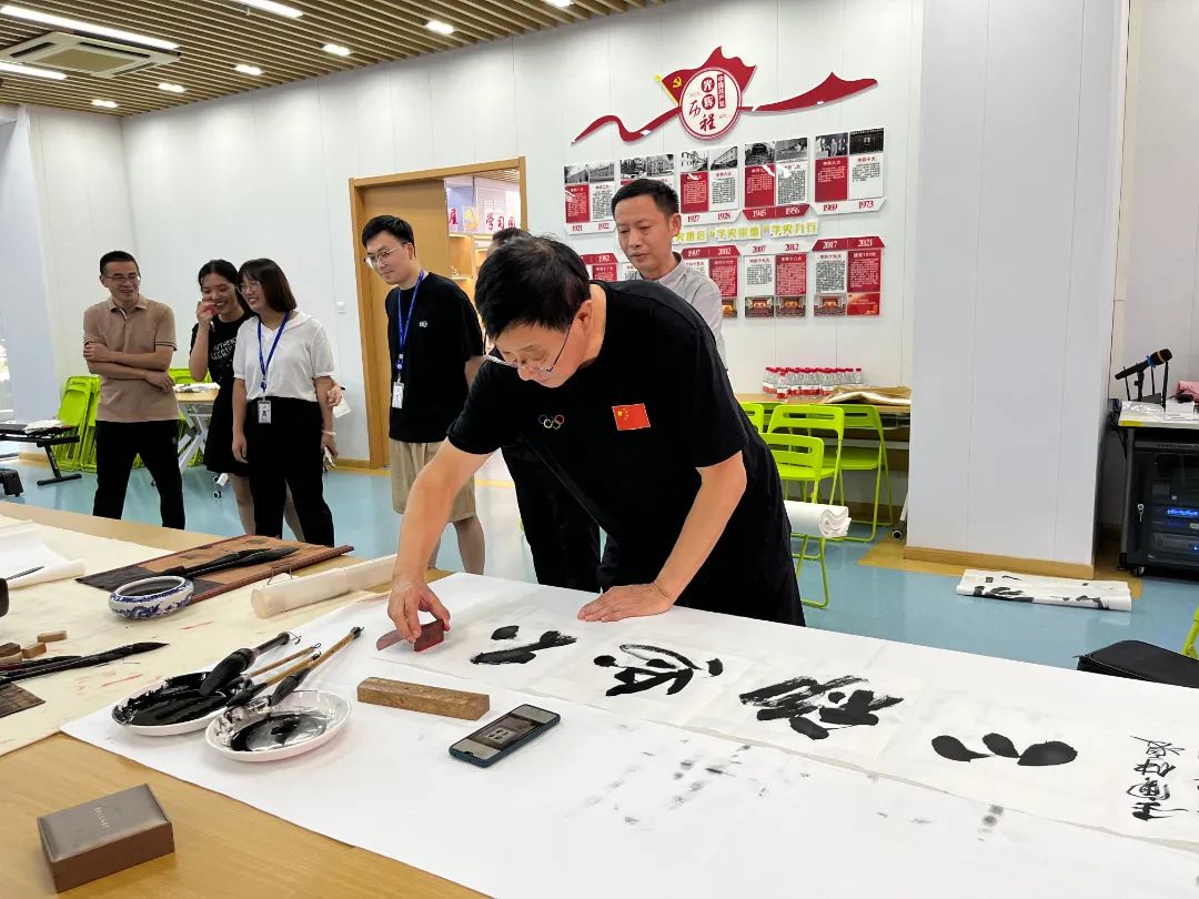 優秀傳統文化是中華民族的精神命脈,是最深厚的文化軟實力,是文化自信的根源。為豐富員工業余文化生活,提高對國畫、書法的認識,創造健康積極的生活方式,今日,特邀請省、市書法家協會會員、杭州市人大書畫研究會會長張勇、西冷印社理事郭超英先生、杭州市原衛生局副局長兼疾控中心主任王明法、浙江省書法家協會理事王建德老師、浙江國際美術交流協會理事葉向陽老師和知名慈善家、社會活動家俞建立等一行來我司舉辦書畫活動。我司黨支部書記俞衛棟、總經理陳樹浩接待來訪領導。