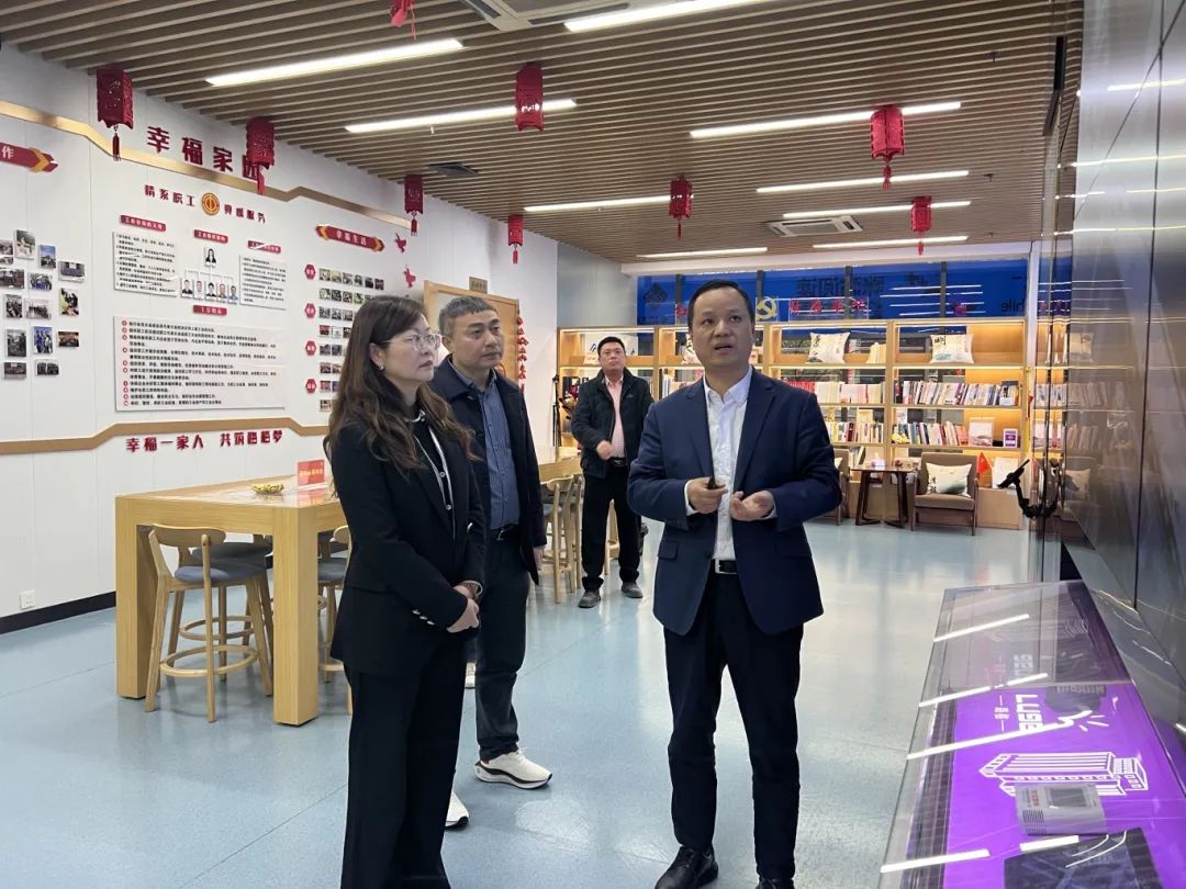 我司執行董事何望君陪同楊主席一行參觀公司展覽展示墻,介紹了我司的發展情況,從公司發展歷程、項目內容、主營業務以及所獲榮譽等幾個方面作了簡要介紹。隨后,何總陪同楊主席一同考察媽咪小屋、黨建基地和辦公環境。