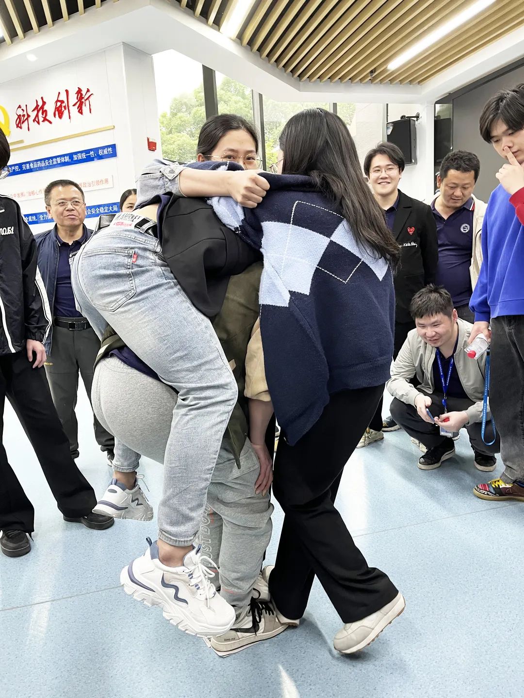袋鼠跳、摸著石頭過河、指壓板跳繩、顛乒乓球和轉圈蒙眼敲鑼......每位選手都竭盡全力,歡呼喝彩的加油聲更是一波接著一波。