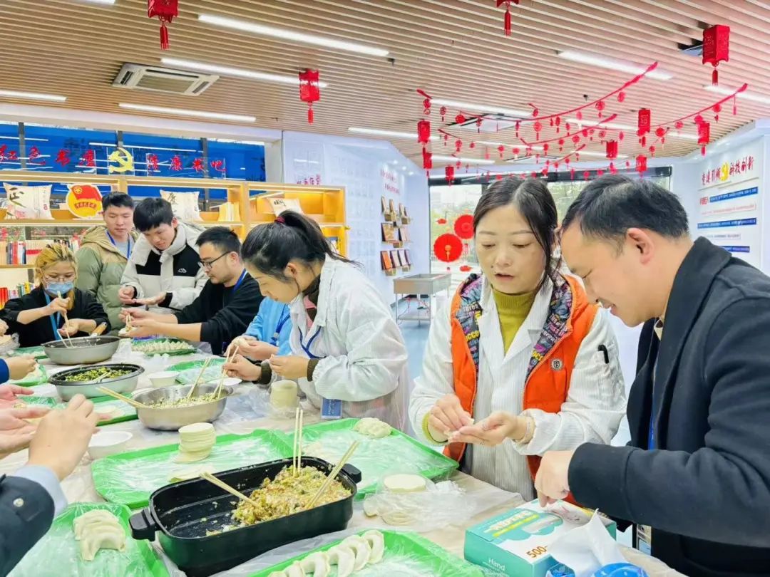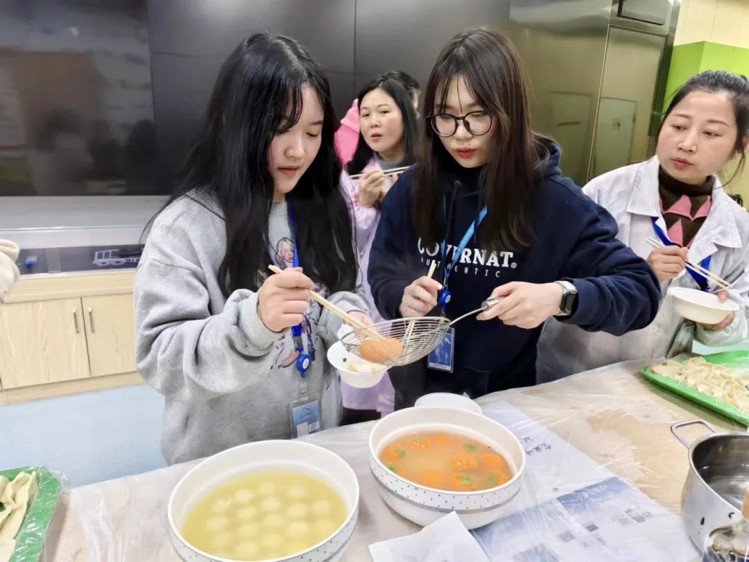 “餃子”是中國特色美食,元宵節也要包餃子,大家互幫互教、齊心協作,邊取餡捏皮,邊聊天談心,忙得不亦樂乎。在喜慶的節日里,在一碗碗熱騰騰的餃子中,在一陣陣歡聲笑語中,快樂美好如期而至。