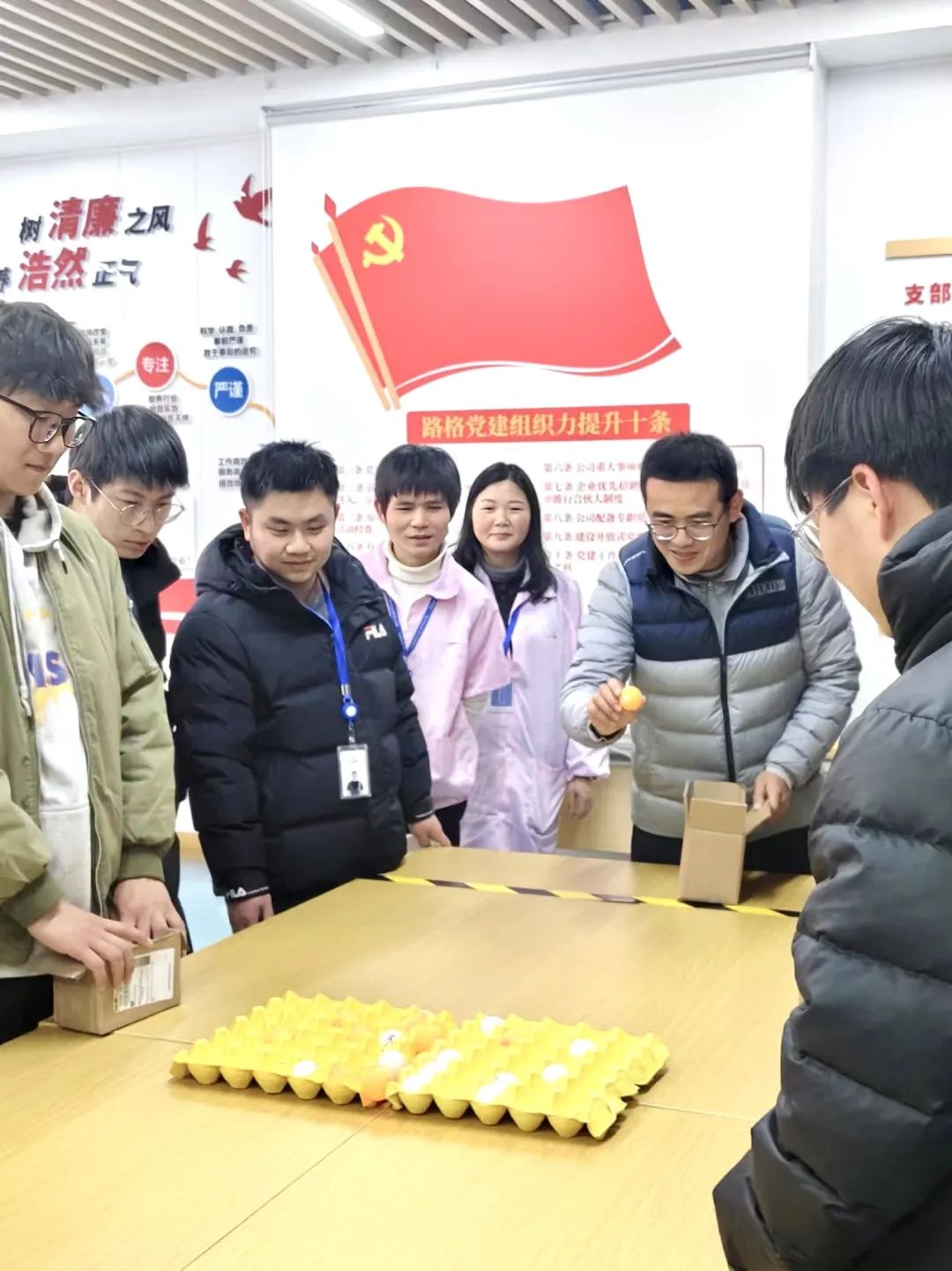 “乒乓球五子棋”是當下較為流行的小游戲,規則是兩方輪流投擲乒乓球,率先連成五子的一方獲勝,獲勝方可兌換龍年抱枕。活動開始,每一次投球都緊張而激動人心,現場觀眾都不時發出歡呼聲!