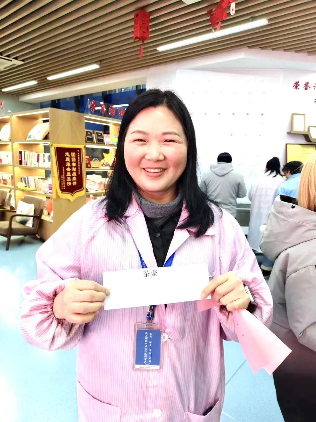 猜燈謎是元宵節的傳統習俗,活動現場,大家三五成群,結伴猜謎,或仰頭讀題,或低頭沉思,互相商討,興致勃勃。很快,70條謎語被一搶而空,對答案領獎品排了長長的隊伍。