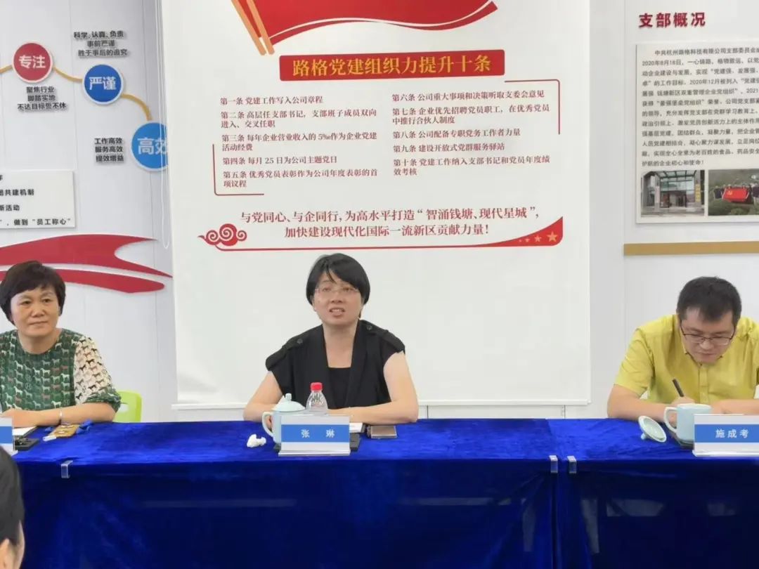 今天下午,杭州市政協副秘書長、民建市委會專職副主委兼秘書長張琳一行赴我司開展調研工作,杭州市錢塘區副區長、民建杭州市委會副主委、民建錢塘區主委潘偉紅陪同調研。